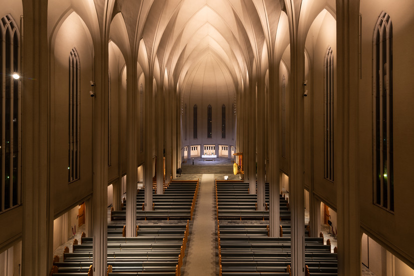 Inni og úti myndir af lýsingu í Hallgrímskirkju. Ljósmyndir: Örn Erlendsson